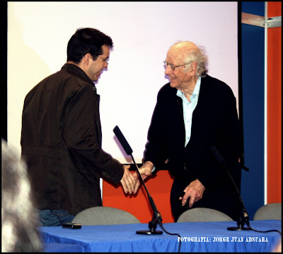 Del 17 al 20 de Abril del pasado año 2008 se celebro el ya clásico salon internacional del cómic de Barcelona. Es esta 26 edicion se tuvo la gran idea de convocar una conferencia / charla / mesa redonda, como quiera decirse, sobre Fantasía y terror. Los invitados a la mesa fueron David Marti (TDT), Paul Nashy y el mítico Ray Harryhausen. Por motivos de trabajo me fue imposible acudir al evento, cosa que todavía sigo arrepentiemdome, pero el gran amigo y coleccionista Jorge Juan Adsuara estuvo hay para poder contarlo y fotografiarlo.